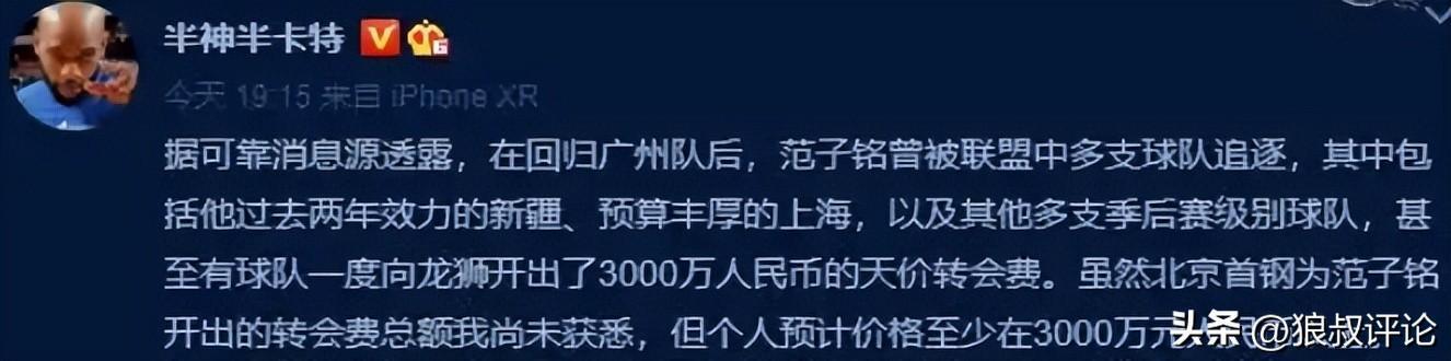 北京过去2个赛季都试图用范子铭去更换周琦,或者赵睿,但当时有北京媒体报道,范子铭个人意愿非常重要,按照顶薪的D类合同,也不可能说随便的裁掉,更何况,范子铭当初引进的时间段,有媒体报道花费超过3千万。